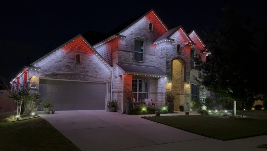 Customize your lighting to highlight specific features of your home like peaks or columns. Or get a beautiful recessed/canned lighting effect.